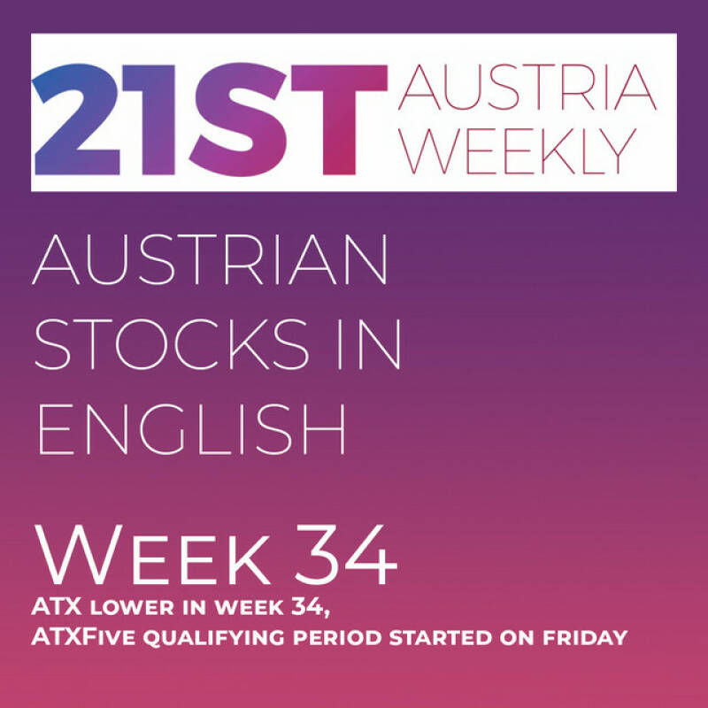 Austrian Stocks in English: ATX lower in week 34, ATXFive qualifying period started on friday 27.08.23