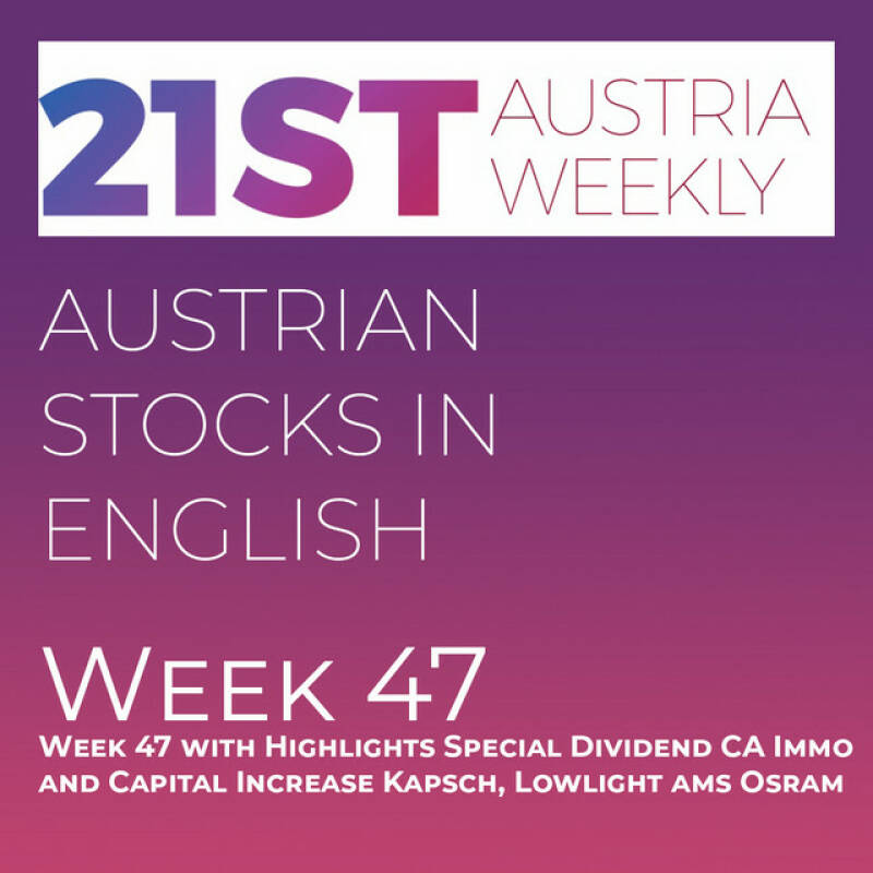 Austrian Stocks in English: Week 47 with Highlights Special Dividend CA Immo and Capital Increase Kapsch, Lowlight ams Osram 26.11.23