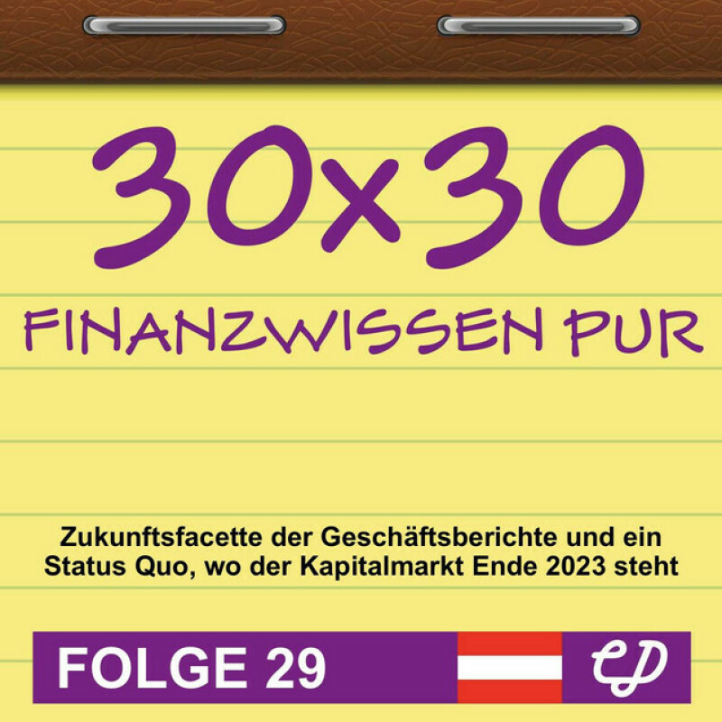 30x30 Finanzwissen pur, Folge 29: Zukunfts-Remix der Geschäftsberichte und ein Status Quo, wo der Kapitalmarkt Ende 2023 steht 18.12.23