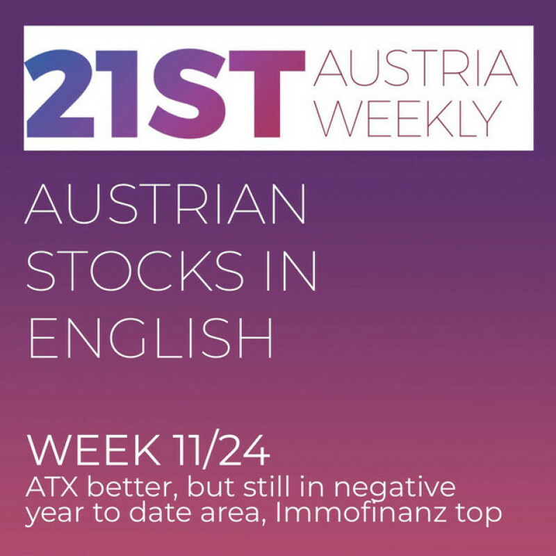 The following script is based on our 21st Austria weekly. Week 11 was a better week for Austrian ATX, which climbed 0,93 percent, but still remains in negative area, when it comes to year-to-date-performance.. Top-Performer was Immofinanz and News came from S Immo, Wienerberger, UBM, VIG, Austrian Post, Palfinger, Vienna Airport, Verbund, Frequentis, Immofinanz, Pierer Mobility and Vienna Stock Exchange.