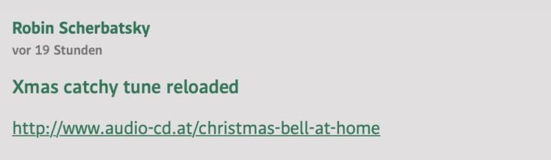 Bewertungen bei Apple (oder auch Spotify) machen mir Freude: http://www.audio-cd.at/spotify , http://www.audio-cd.at/apple .
