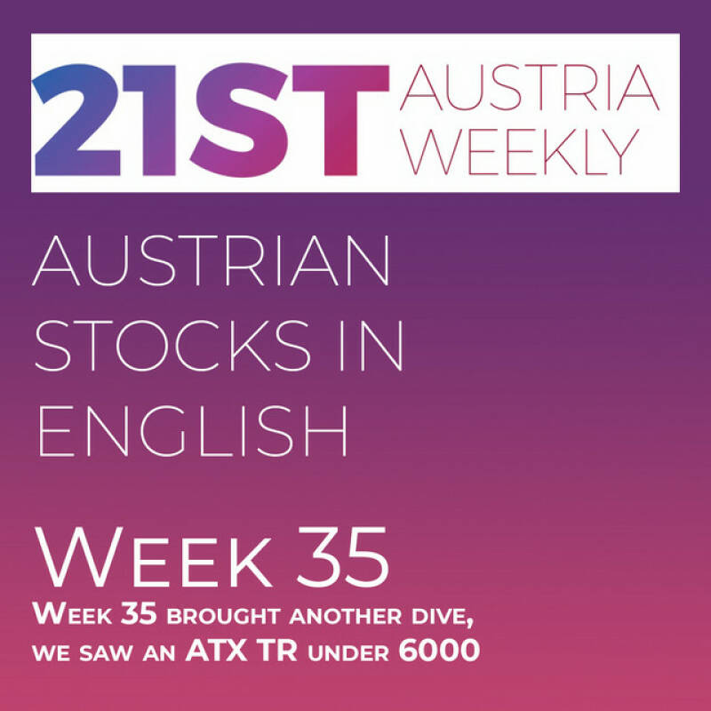 Welcome to "Austrian Stocks in English - presented by Palfinger", the new and weekly english spoken Summary for the Austrian Stock Market, positioned every Sunday in the mostly german languaged Podcast " Christian Drastil - Wiener Börse, Sport Musik und Mehr“ . Like last weeks Week 35 brought also a downside for ATX TR, which lost 1,98 percent to 6101,35 points. Intraweek we dived first time since Mid of July under 6000 points. News came from Pierer Mobility (2), Kontron, S Immo, Valneva, Porr, Warimpex, Semperit, Wienerberger, Strabag, Agrana, AT&S, Andritz (2) and Fabasoft.