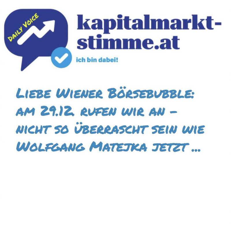 kapitalmarkt-stimme.at daily voice: Liebe Wiener Börsebubble - am 29.12. rufen wir an - nicht so überrascht sein wie Wolfgang Matejka jetzt 17.12.25